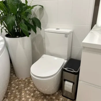 I appreciate the space-saving design and the integrated toilet brush holder. It’s almost perfect, but the tissue holder part is a bit tight. Still, a good purchase overall.