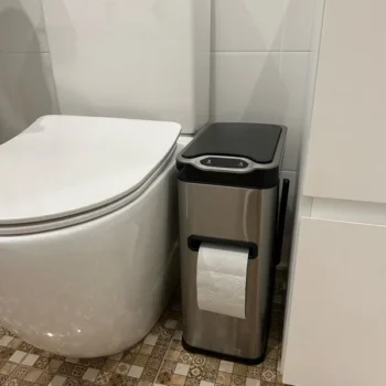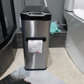 This trash can has transformed my bathroom into a model of efficiency and style. The hands-free operation is a revelation, keeping things sanitary and convenient. Its eco-friendly construction aligns with my values, and its space-saving shape fits perfectly in my limited space. The combination of a trash can, toilet brush holder, and tissue box holder in one unit is a stroke of genius, decluttering my bathroom and saving me time and effort. The easy-to-clean stainless steel exterior always looks new, and the modern design elevates the entire look of my bathroom. Durability-wise, it’s unmatched, promising years of reliable use. This isn’t just a trash can; it’s a comprehensive bathroom solution.