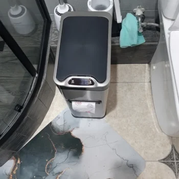 This trash can’s blend of smart sensor technology, eco-friendly construction, and space-saving design is a game-changer for any bathroom. The ease of cleaning, combined with the durability of its materials, ensures a lasting addition to my bathroom. With its stylish appearance and practical features, this trash can has elevated the form and function of my bathroom, making it a model of modern home hygiene and convenience.
