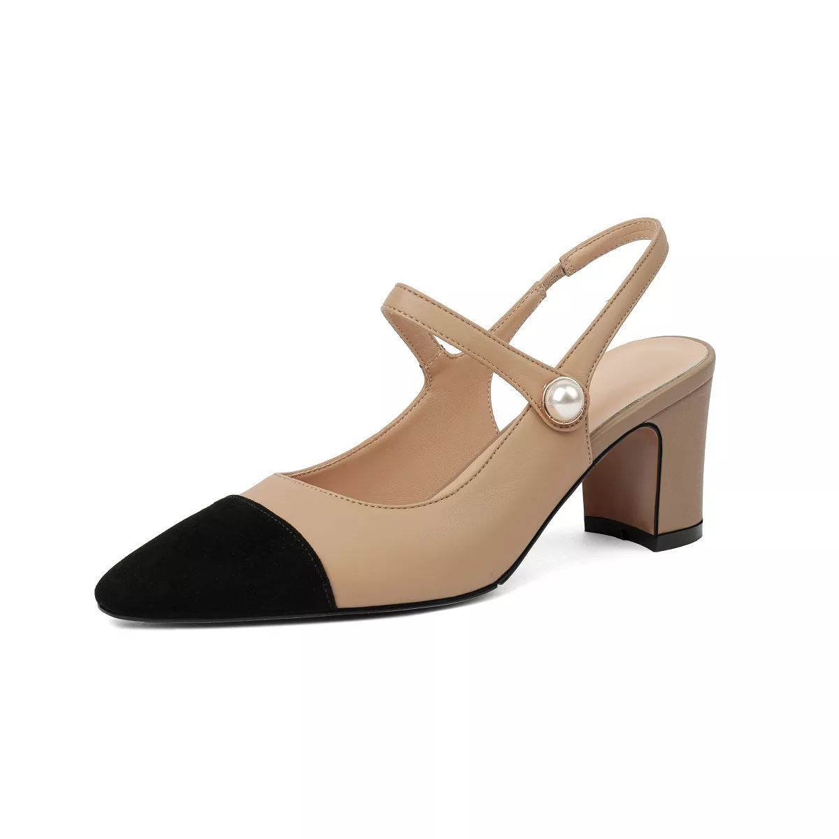 Elegant French Style Sheepskin Slingback Sandals – 2 Inch Heel Summer Pumps