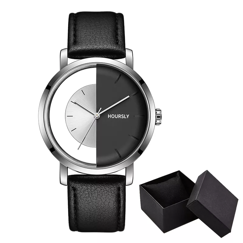 The minimalist aesthetic of this wristwatch is ideal for those who believe less is more. Its unique transparent dial offers a fresh take on traditional watch faces, allowing the wearer’s personality and fashion choices to shine through. Crafted with a sleek black or white color palette and quartz movement, it delivers accurate timekeeping without compromising on style.