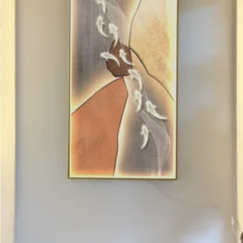 What sets this piece apart is its stunning abstract fish design, which not only serves as a source of light but also as a unique piece of art. The decorative painting paired with LED lighting brings a modern twist to classic wall decor. The lamp’s body is crafted from durable iron with a luxurious gold finish, and the meticulous plating process ensures a long-lasting luster. ย
