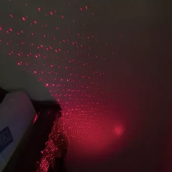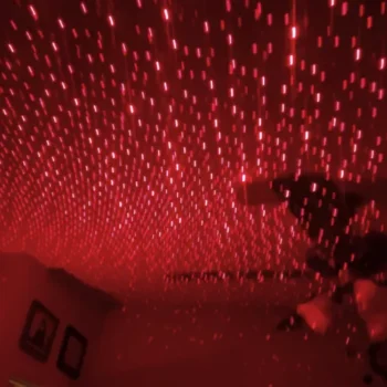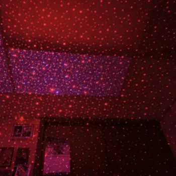 Our USB Ceiling Night Light comes in a choice of red or purple LED light. When turned on, you can turn the dial to change lighting effects and patterns, from stars to dots to constellation-like projections.